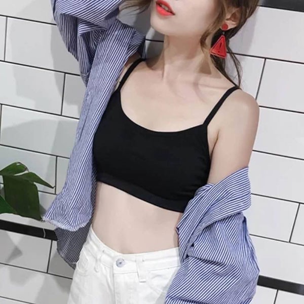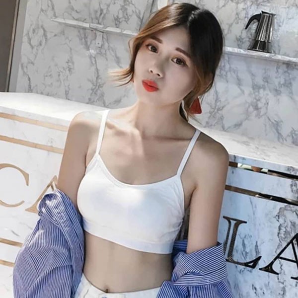 NXS 超好穿 單肩帶 交叉 小可愛 短版 背心 胸墊可拆 彈性 比基尼 爆乳 性感 細肩帶 防走光 運動內衣 黑白