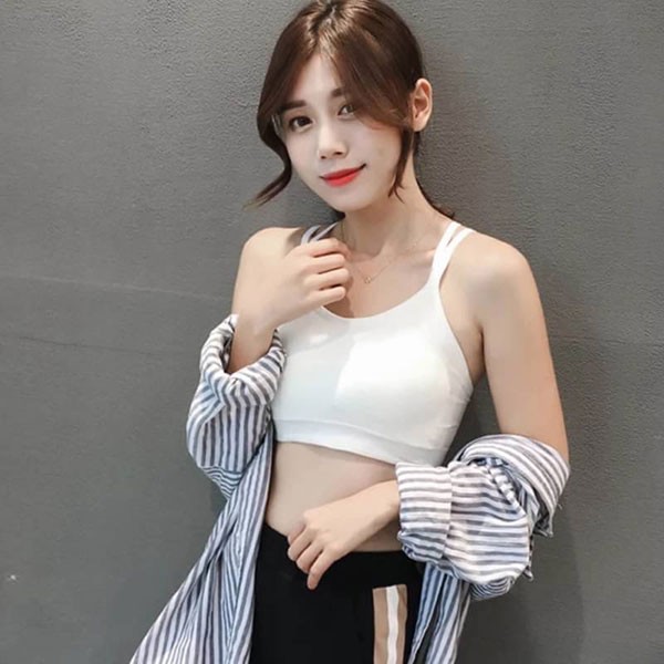 NXS 超好穿 雙肩帶 交叉 小可愛 短版 背心 胸墊可拆 彈性 比基尼 爆乳 性感 細肩帶 防走光 運動內衣 黑白