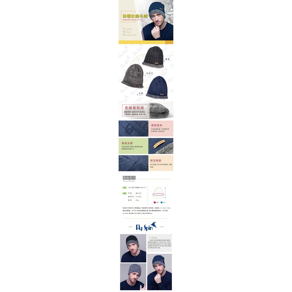 男款保暖加厚毛絨針織帽 16AW-N006