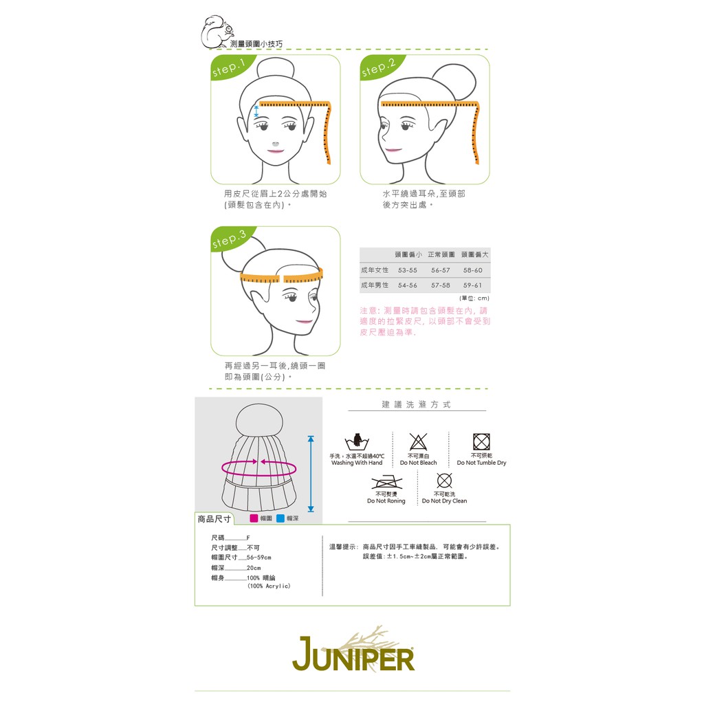 JUNIPER女款雙層加厚針織保暖防風毛線冬帽+可拆卸毛球(J5117)