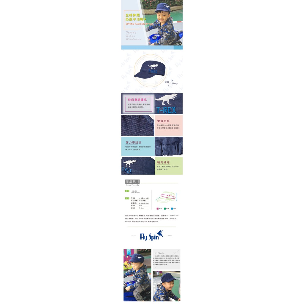全棉恐龍刺繡休閒平頂軍人兒童帽C-903