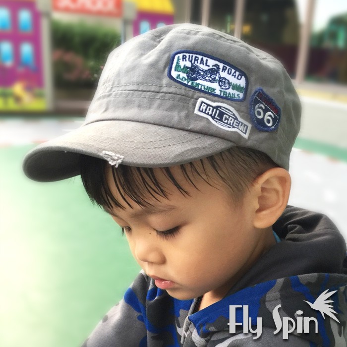 全棉休閒貼布裝飾平頂軍人兒童帽C-901