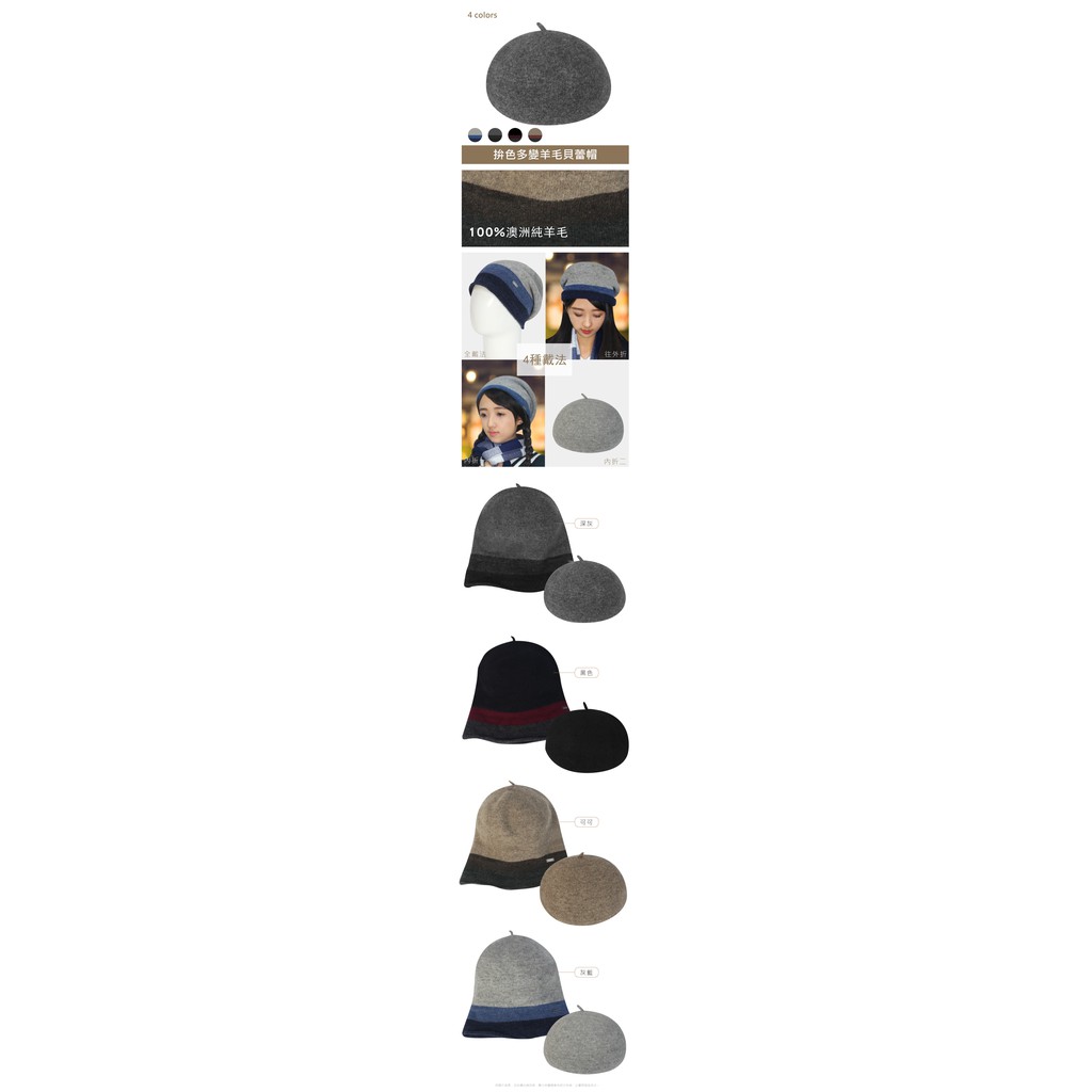 JUNIPER秋冬保暖純澳洲羊毛拚色多變畫家貝蕾帽 TJW1005
