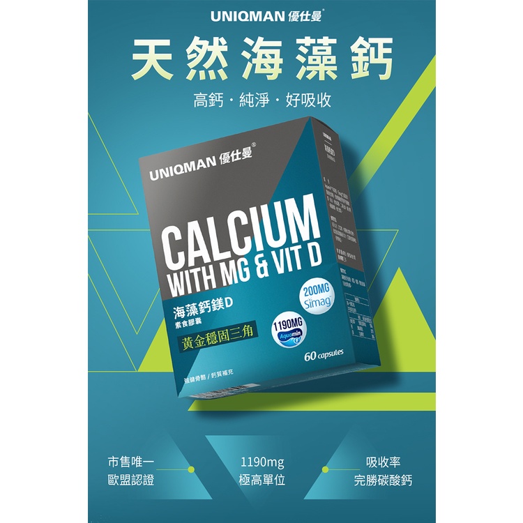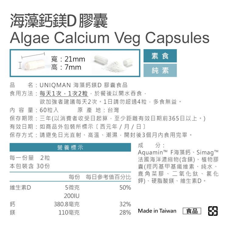 UNIQMAN 海藻鈣鎂D 素食膠囊 (60粒/盒)2盒組 缺鈣必備/鈣質/穩健打底/關鍵有力/補鈣 官方旗艦店