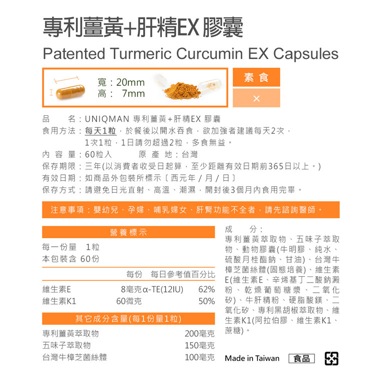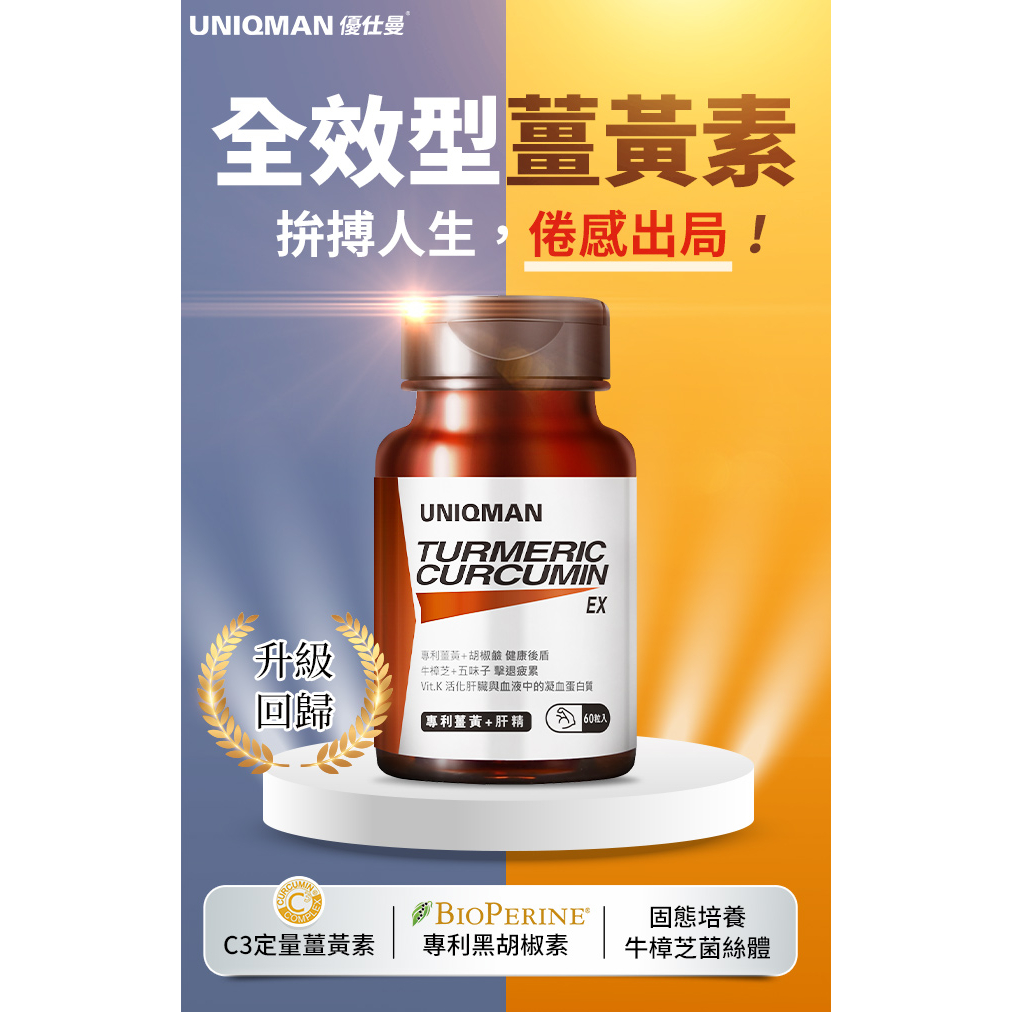 UNIQMAN 專利薑黃+肝精EX 膠囊 (60粒/瓶) 熬夜補給/應酬加班/提神/解倦/促進代謝 官方旗艦店