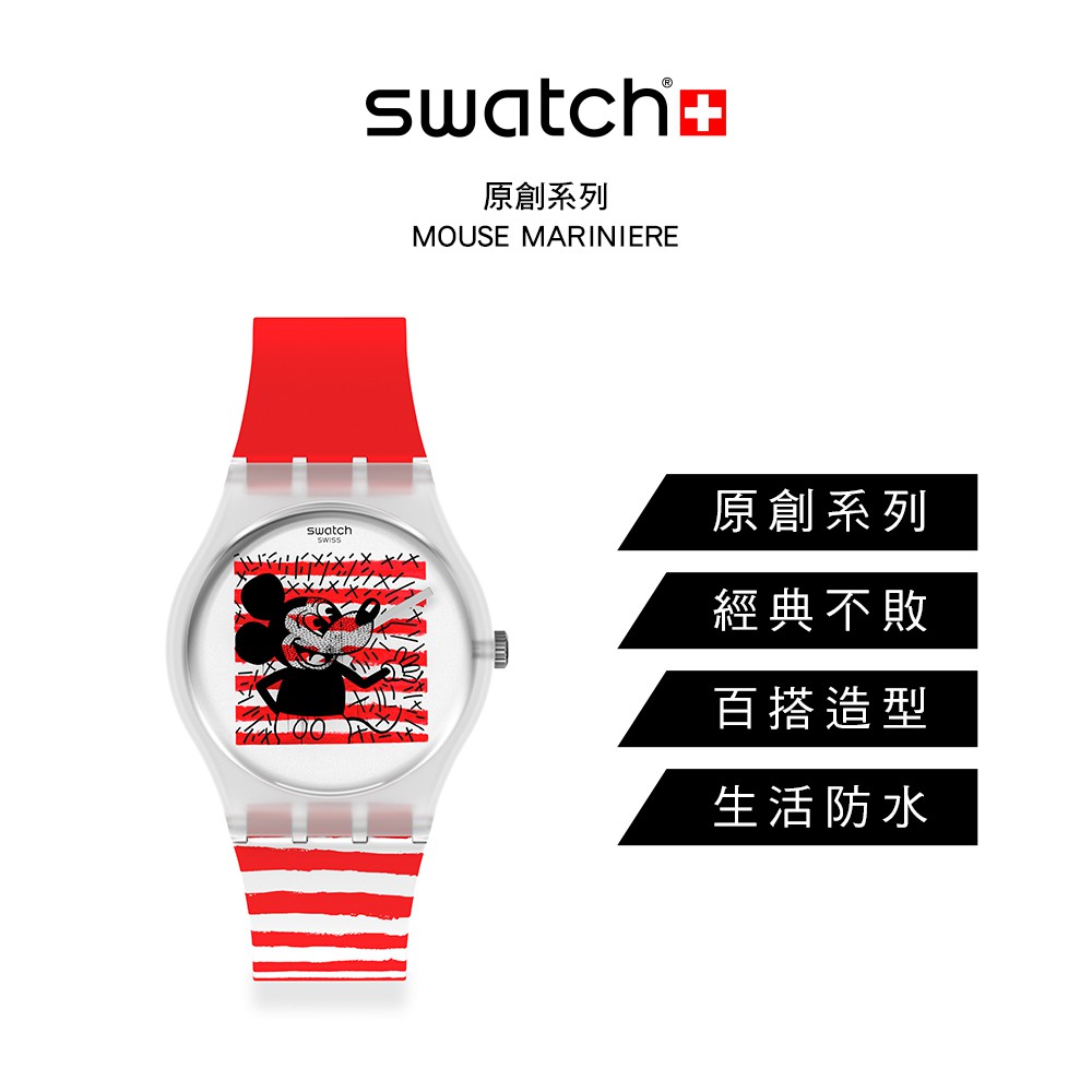 Swatch MOUSE MARINIÈRE 經典手錶/迪士尼/米奇 瑞士製造 GZ352 (34mm)【官方旗艦店】