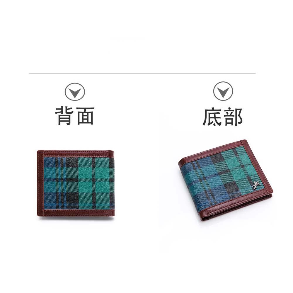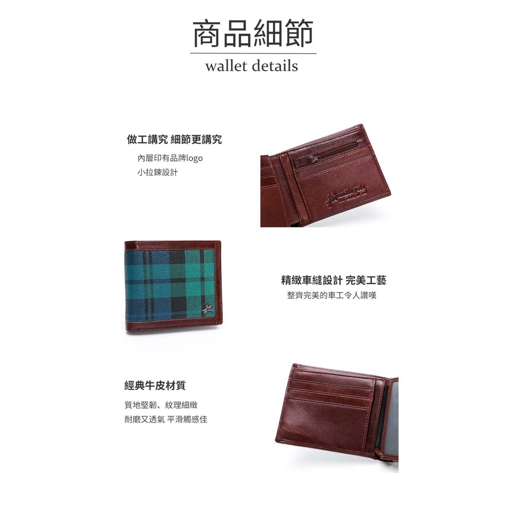 DF BAGSCHOOL SANDIA POLO系列經典格紋多功能牛皮零錢拉鍊袋短夾 男夾 皮夾 綠格 短夾