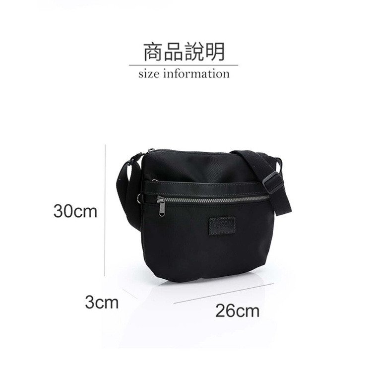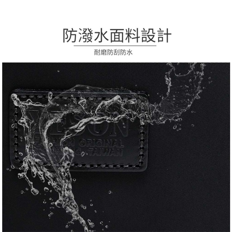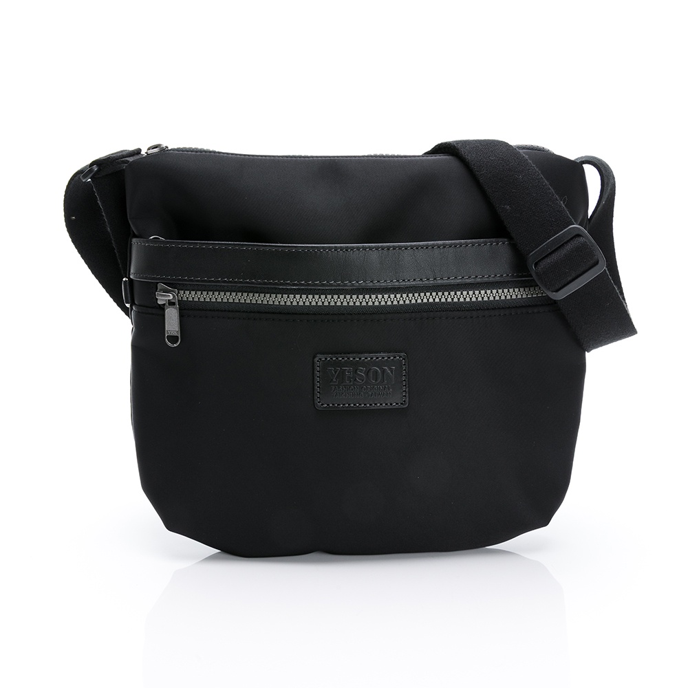 YESON 台灣精品 防潑水 尼龍 輕量 側背隨身包 男包 斜背包 側背包 黑色 外出 逛街 休閒 流行