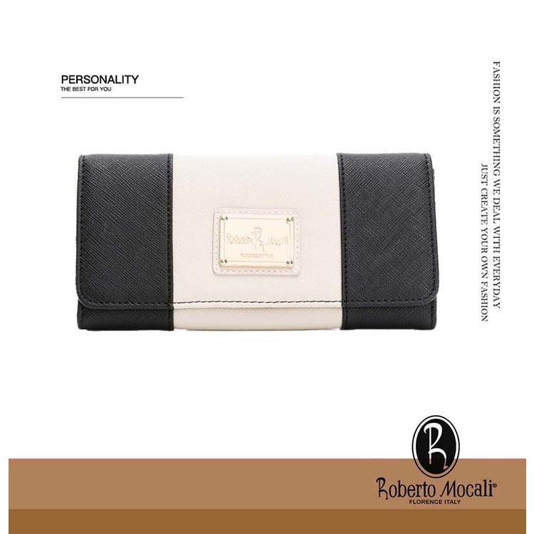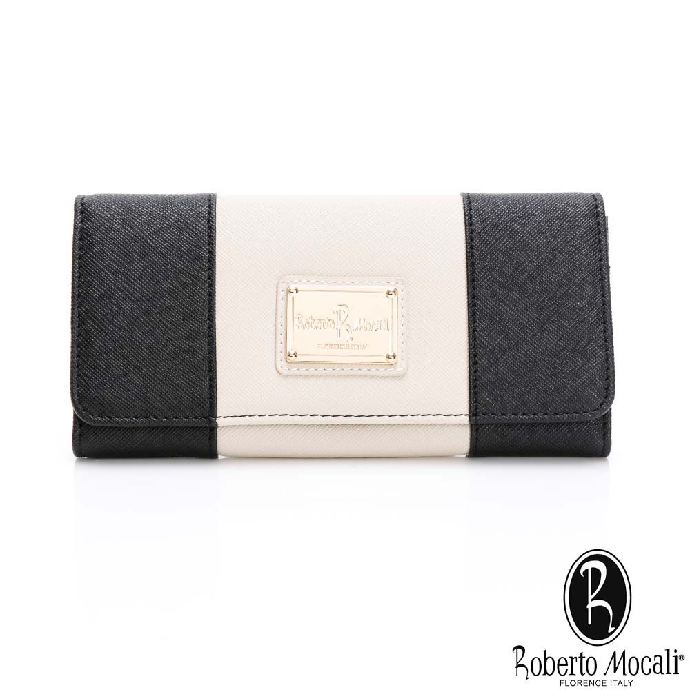 Roberto Mocali 義大利諾貝兔 經典黑白系 高雅 淑女 翻蓋長夾 女夾 女長夾 送禮 精品 質感 優雅