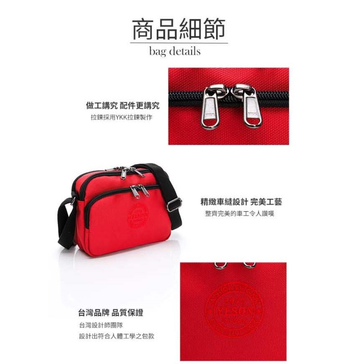YESON 台灣精品 三層拉鍊隔層輕巧橫式小側背包 3色可選 女包 男包 斜背包 側背 肩背包 外出