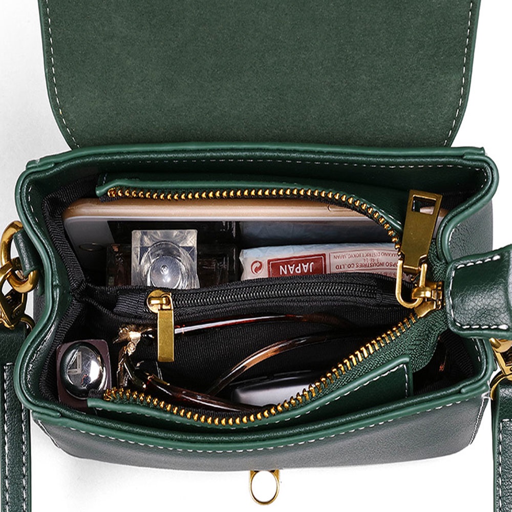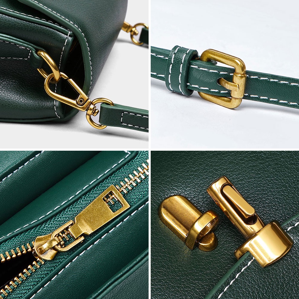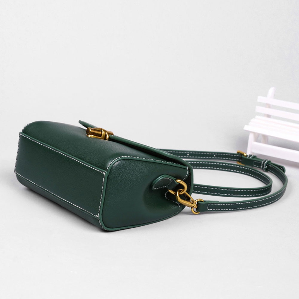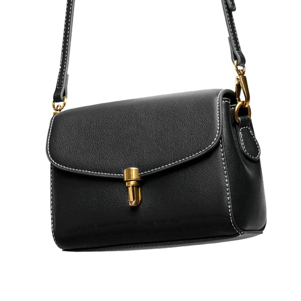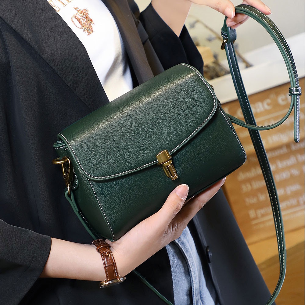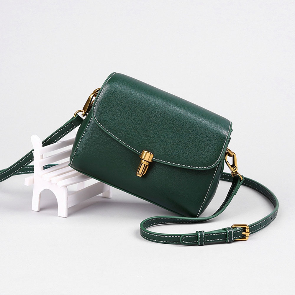 DF 森林系真皮鎖扣單肩斜背掀蓋小方包 2色 側背包 斜背包 肩背包 時尚 輕巧 可愛 優雅 約會