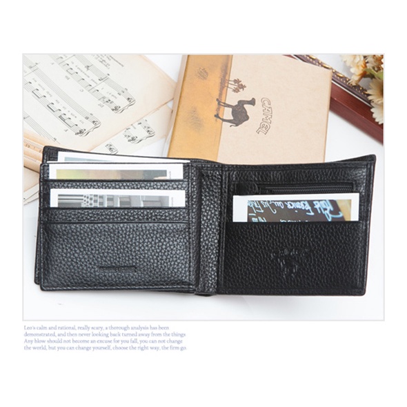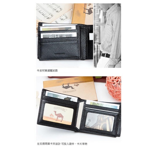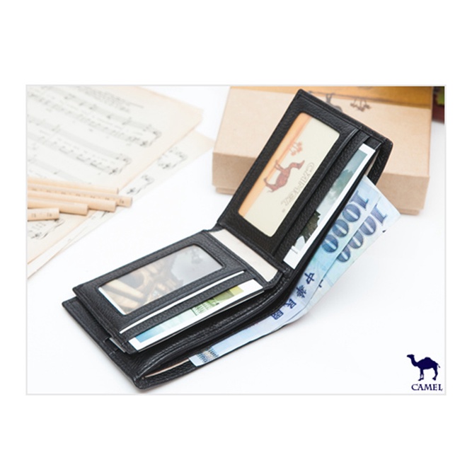 CAMEL - 爵品絲印款牛皮8卡2照短夾-共2色