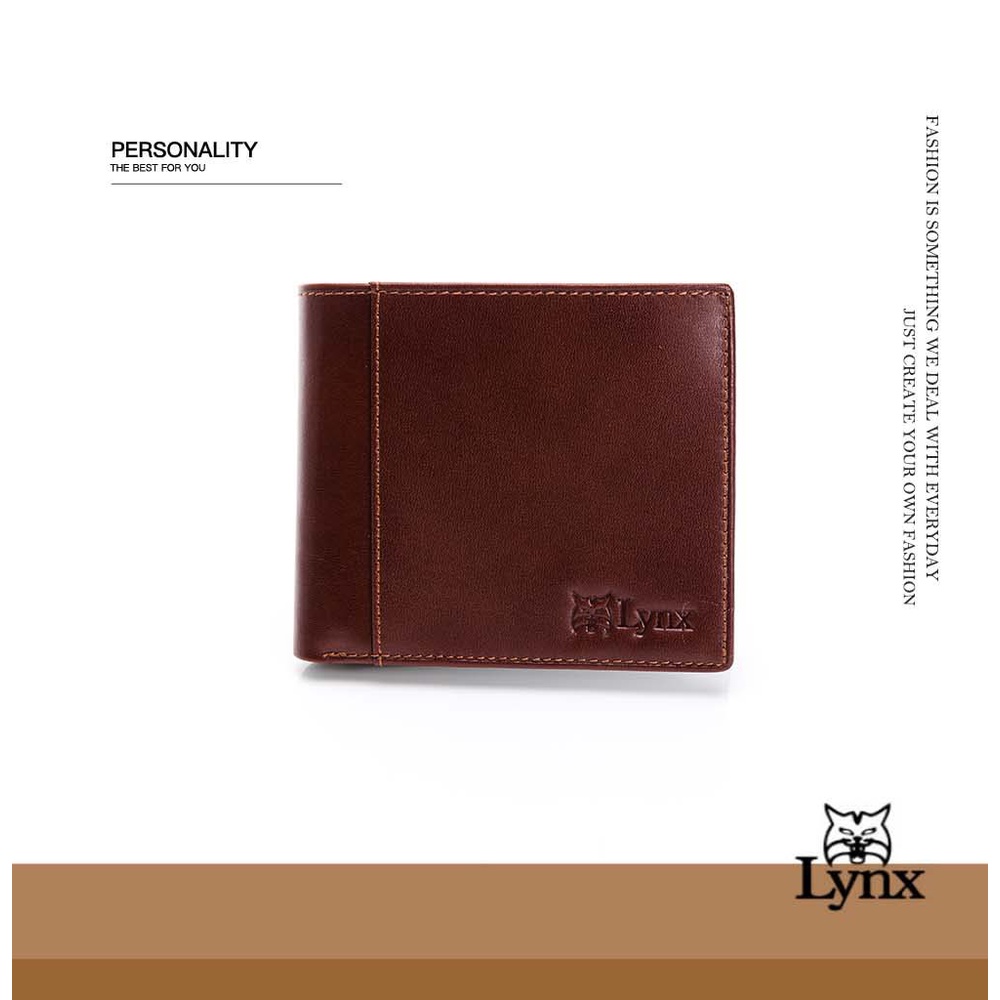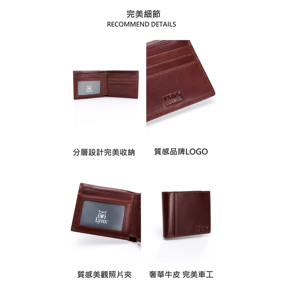 Lynx 美國山貓進口牛皮極簡風證件雙鈔票短夾 男士 上班 皮夾 短夾 送禮 牛皮 自用 休閒 百搭