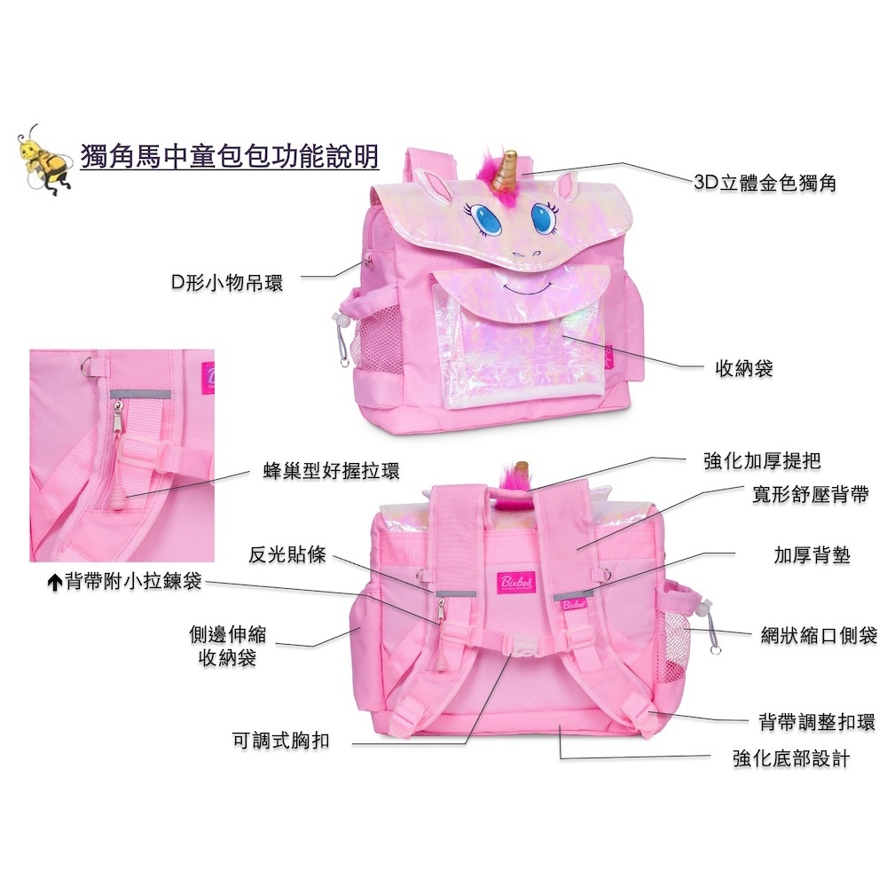 美國Bixbee - 3D動物童趣系列奇幻粉獨角馬中童背包