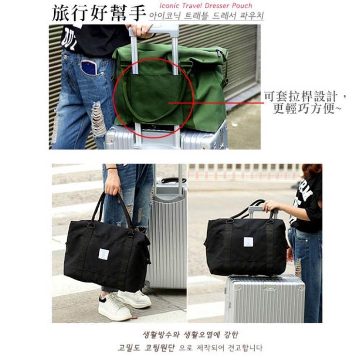 DF Queenin 韓風大容量防潑水多功能旅行袋可掛行李箱 手提袋 行李袋 出差 旅行 簡約 多用途 多色可選