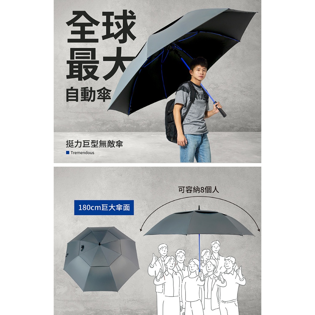 【雙龍牌】挺力巨型無敵傘|防風傘|防曬傘|全球最大自動傘|自動開傘 雨天晴天 特大雨傘 黑膠雨傘 迎賓自動傘 雙層傘