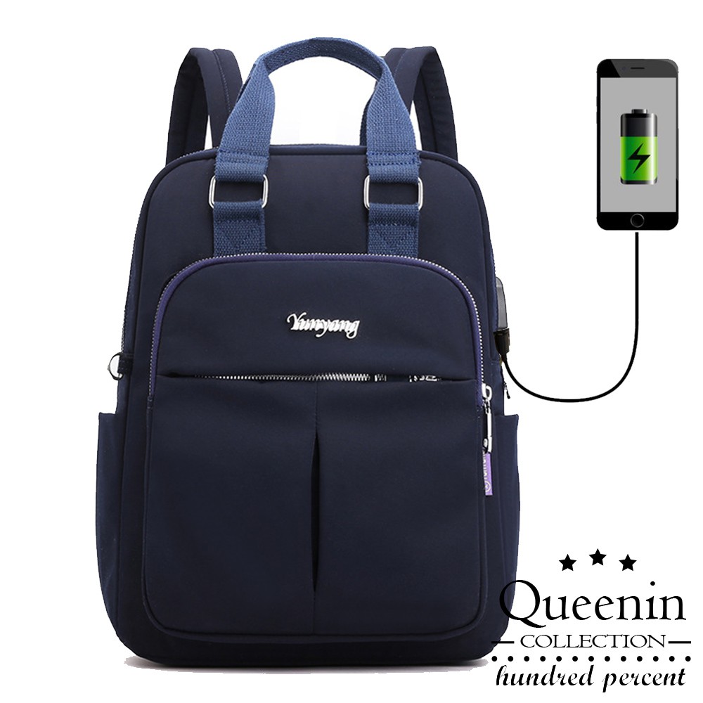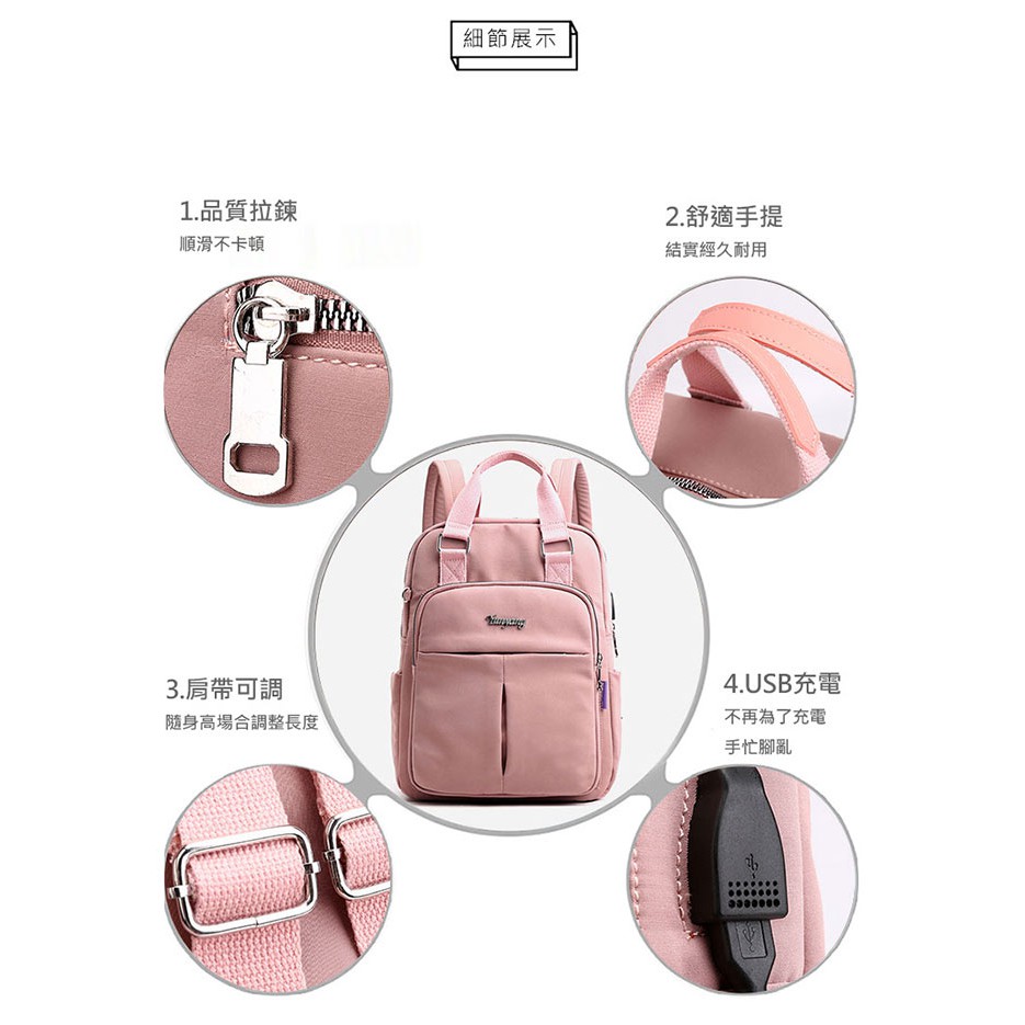 DF 旅遊休閒USB充電防盜輕盈雙肩包 -共4色