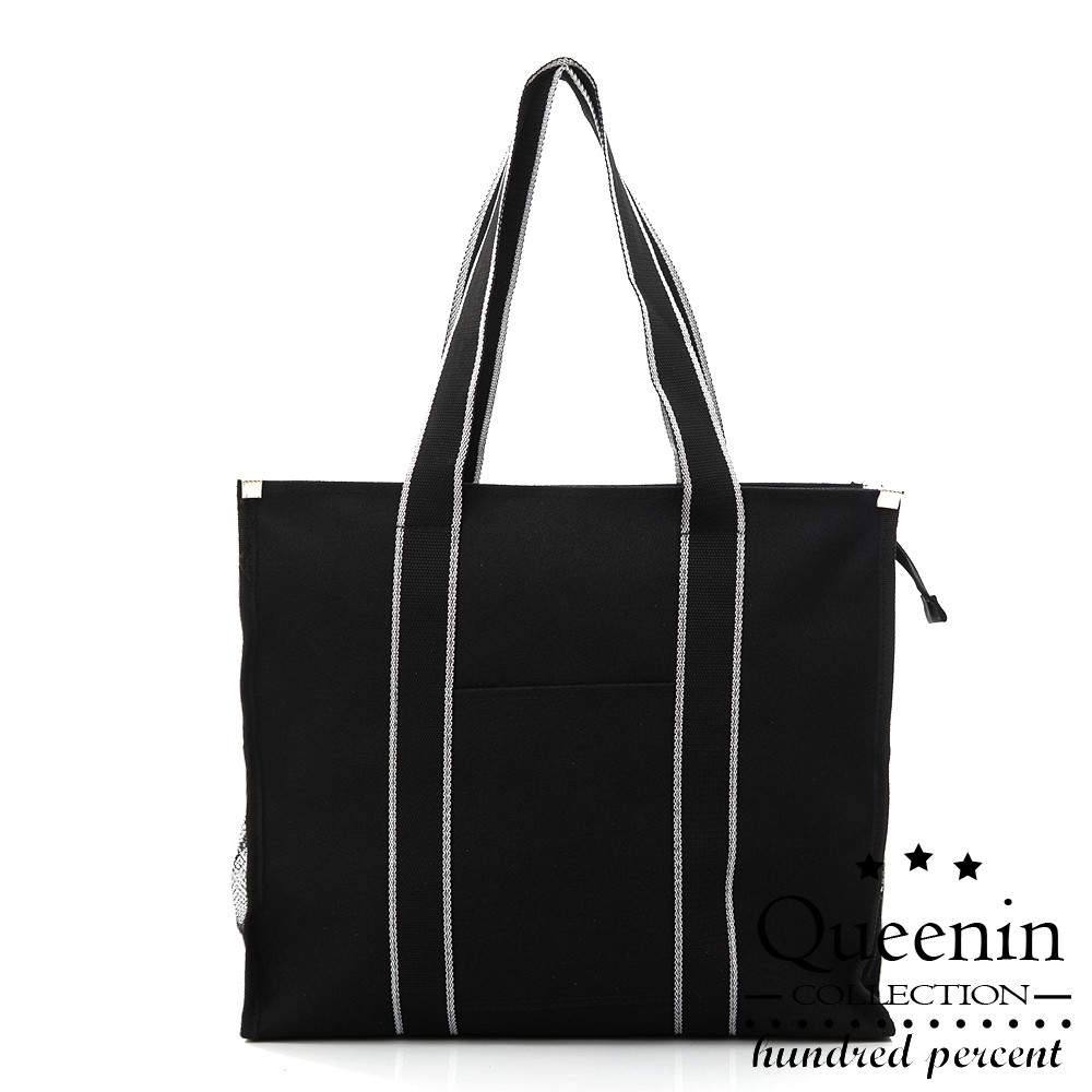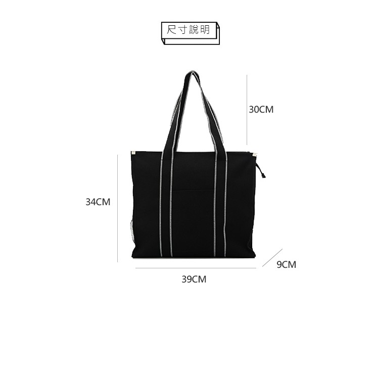 DF 台灣製 防潑水簡約風黑白手提肩背包 旅行包 購物袋 學藝袋