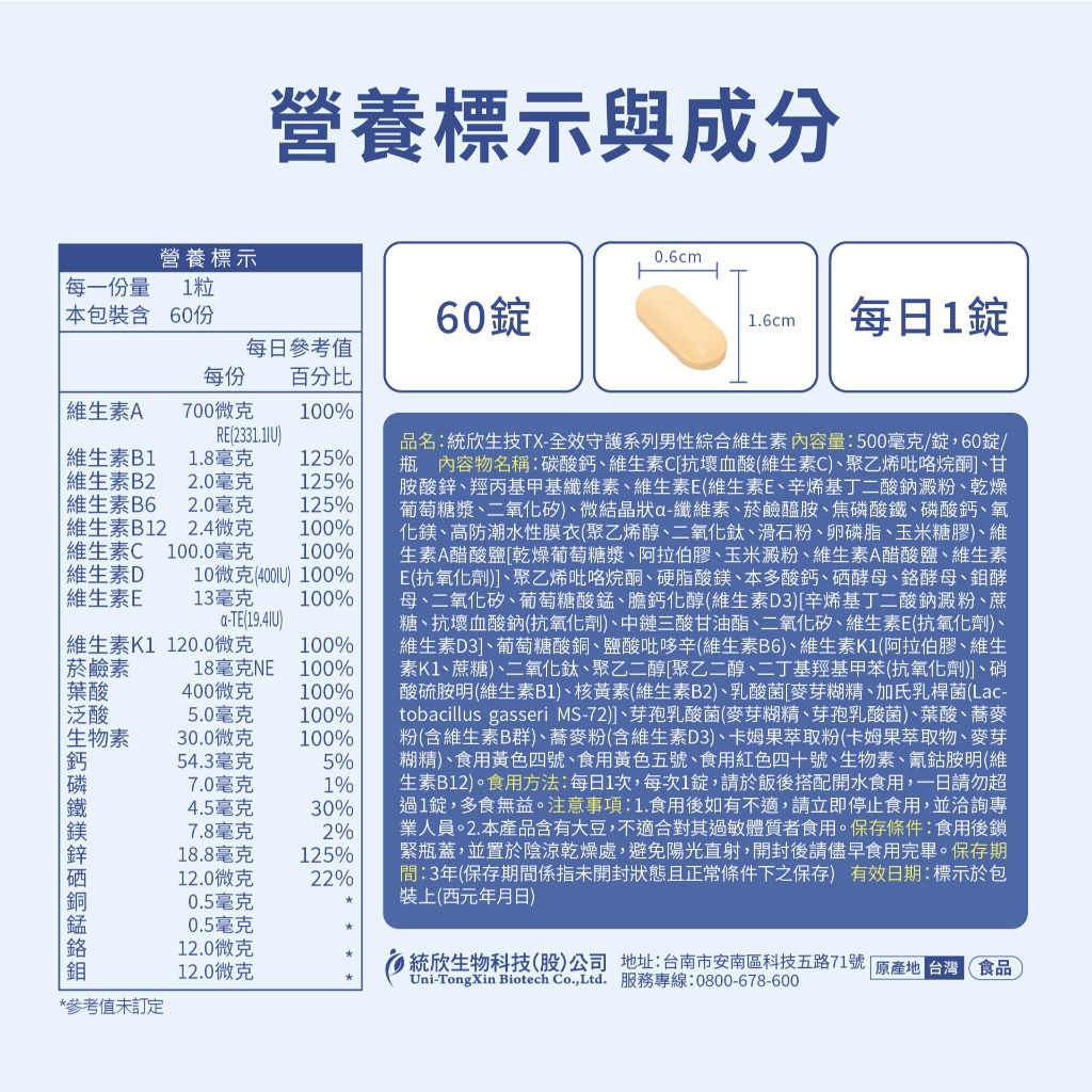 【統欣生技】TX男性綜合維生素雙層緩釋錠 60錠/瓶 多入組