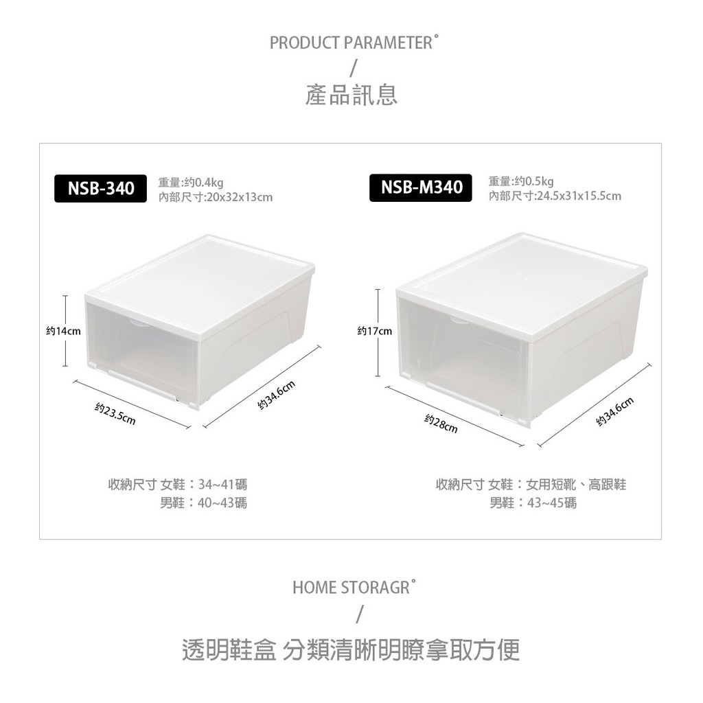 【限時免運】IRIS OHYAMA 加厚透明可堆疊鞋盒4入 NSBM340 (收納盒/收納箱/鞋櫃)