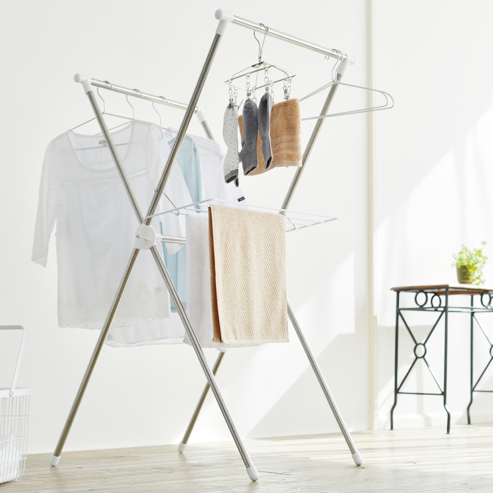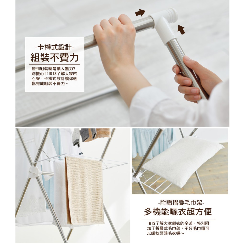【限時免運】IRIS OHYAMA 不鏽鋼隨插即用折疊曬衣架 H-70XN(毛巾架/梅雨)