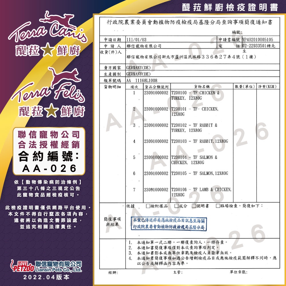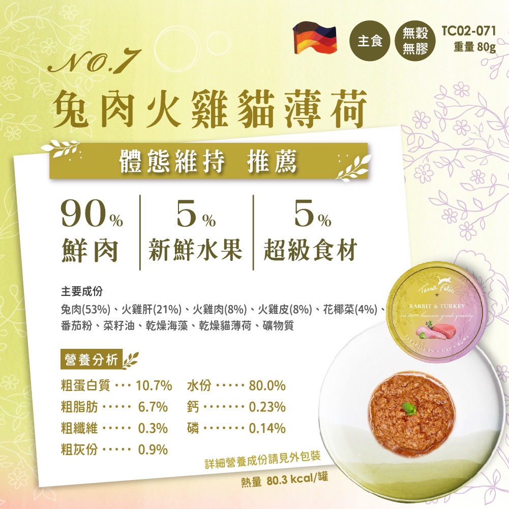 德國 Terra Canis 醍菈鮮廚 仙境貓罐 80g 主食罐 主食貓罐 貓罐 貓罐頭