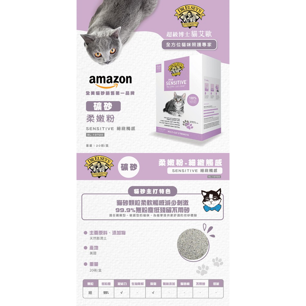 DR.ELSEY'S貓艾歐(艾爾博士) |貓砂柔嫩粉-SENSITIVE細緻觸感20磅