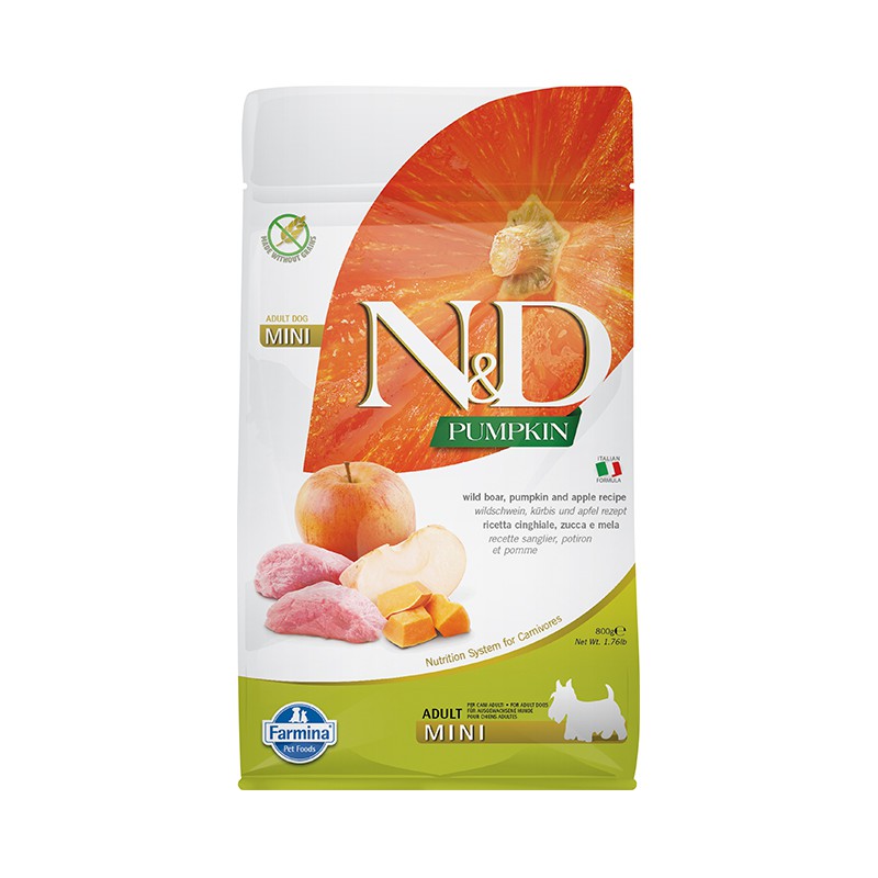法米納Farmina【ND天然南瓜無穀】犬糧 狗飼料 狗糧料【 PD5 全齡犬野豬蘋果 小顆粒 800g 800克】