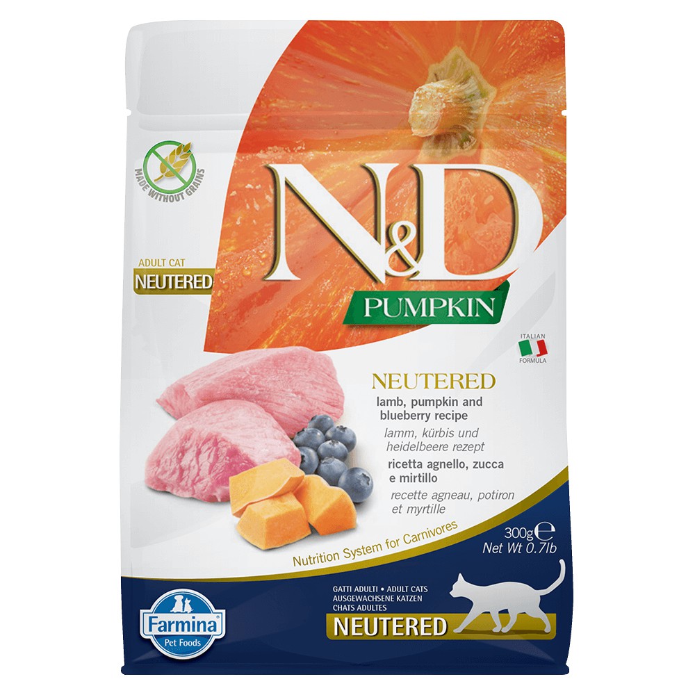 法米納 Farmina【ND天然南瓜無穀系列】貓糧 貓飼料 貓乾糧【PC6 室內/結紮貓 羊肉藍莓 300g 300克】