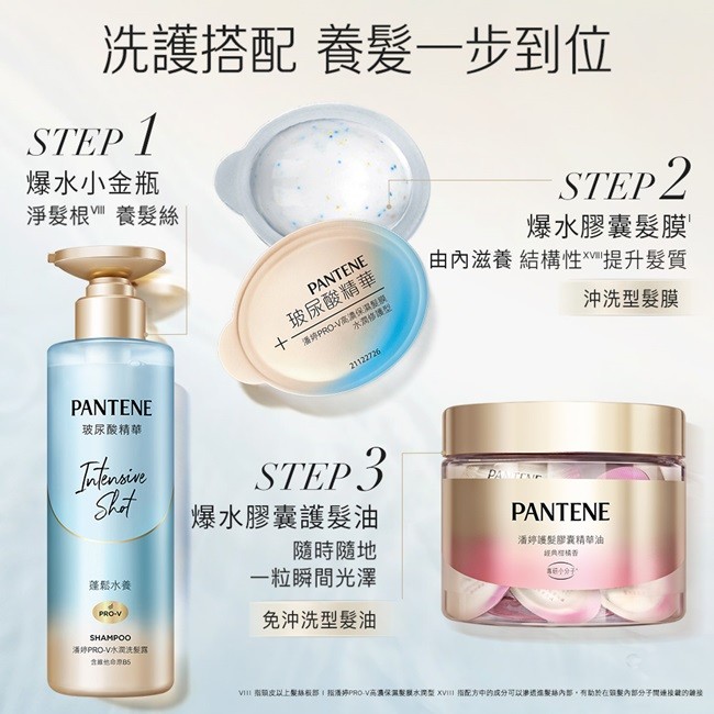 【PANTENE 潘婷】爆水精華系列-爆水膠囊髮膜 Pro-V高濃保濕髮膜12mlx8 (水潤修護型)