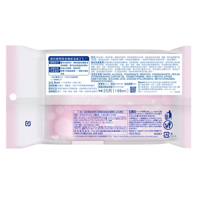 Biore-3度C涼感濕巾清新花香 20入