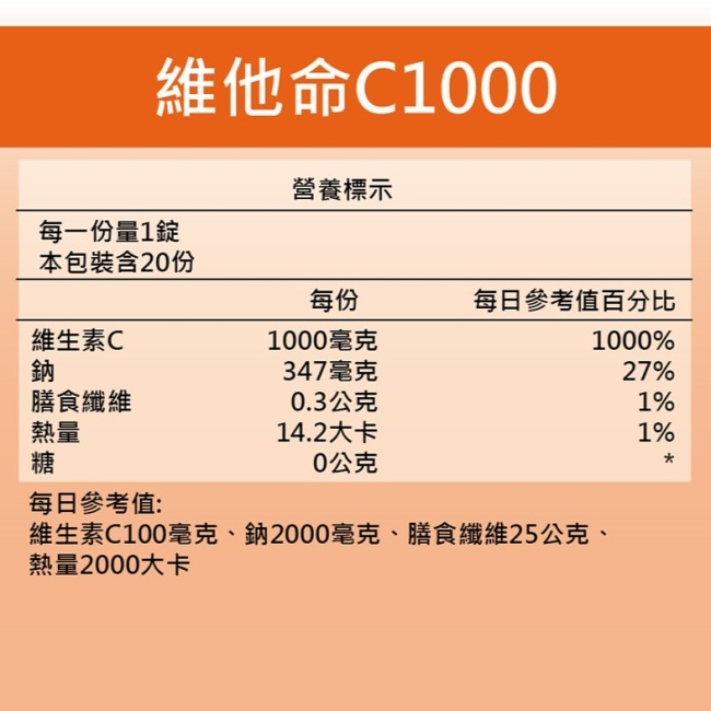 SUNLIFE森萊富 維他命C1000發泡錠(檸檬口味) 20錠