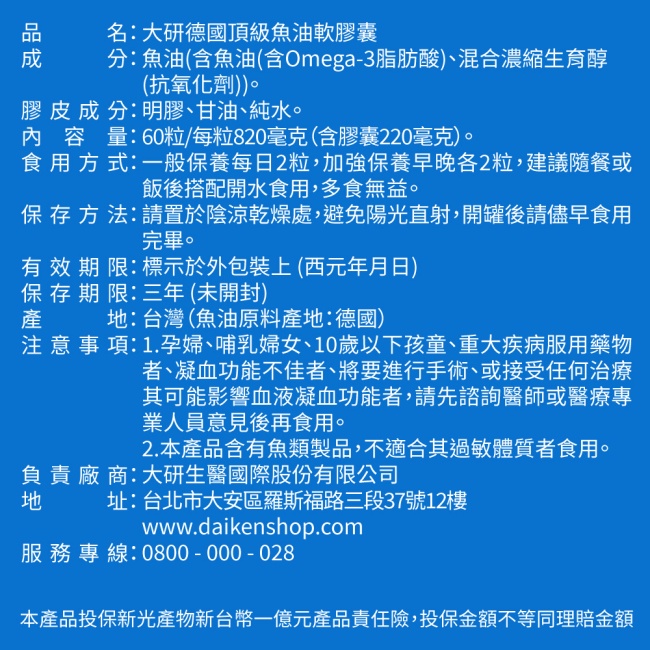 【大研生醫魚油】德國頂級魚油軟膠囊60 粒/瓶