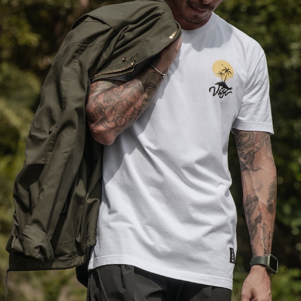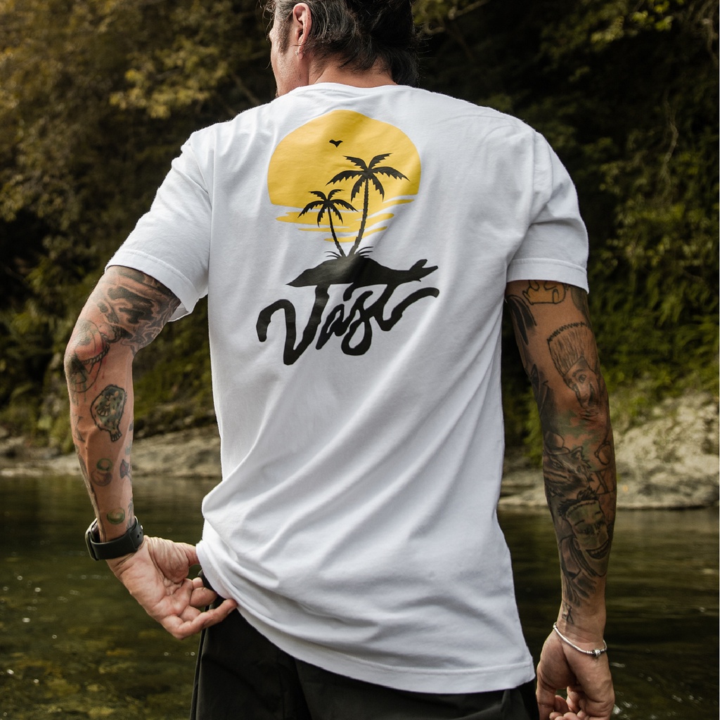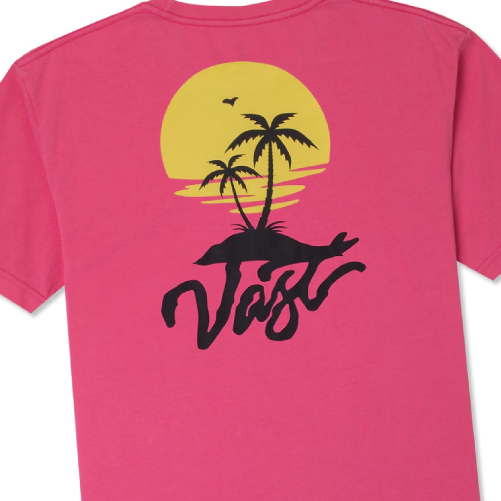 加州衝浪品牌VAST 現貨短袖T 日落島嶼 合身版型 - 白/桃紅