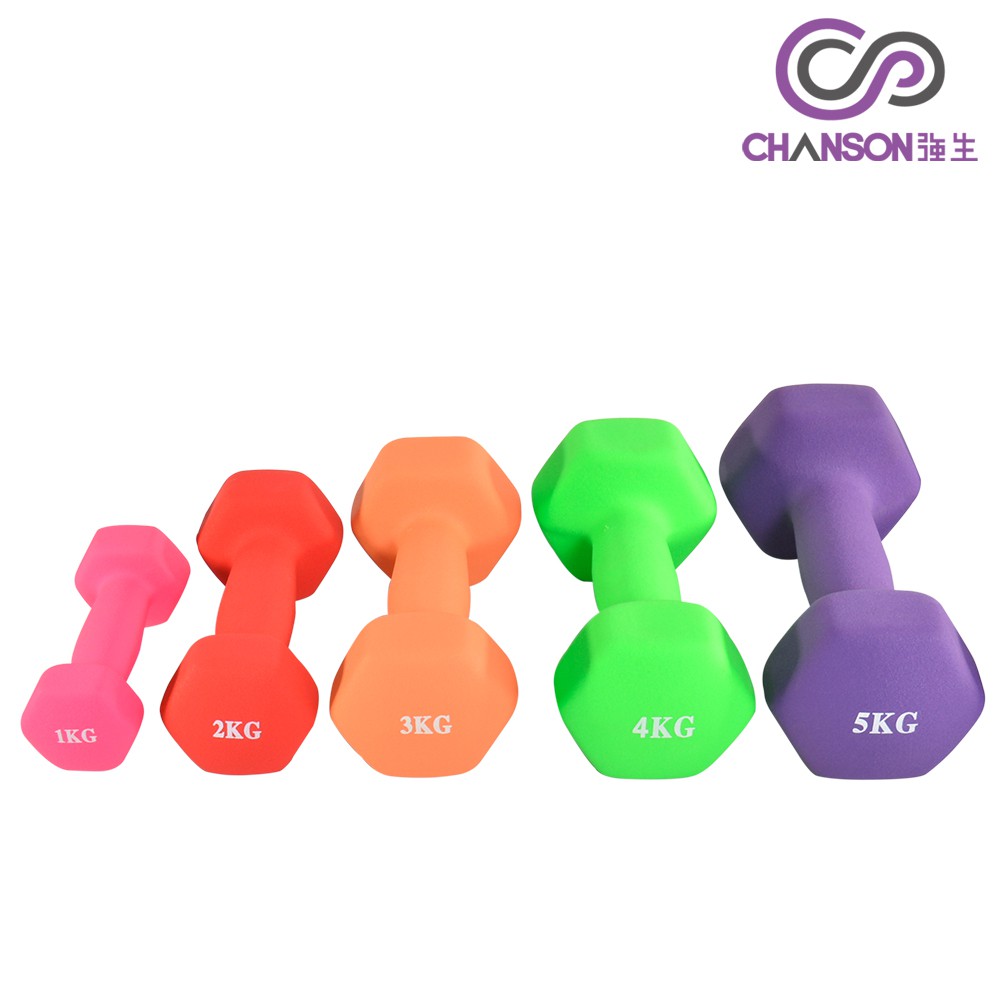 (強生CHANSON) 彩色鑄鐵六角啞鈴1-5kg (1組2支)
