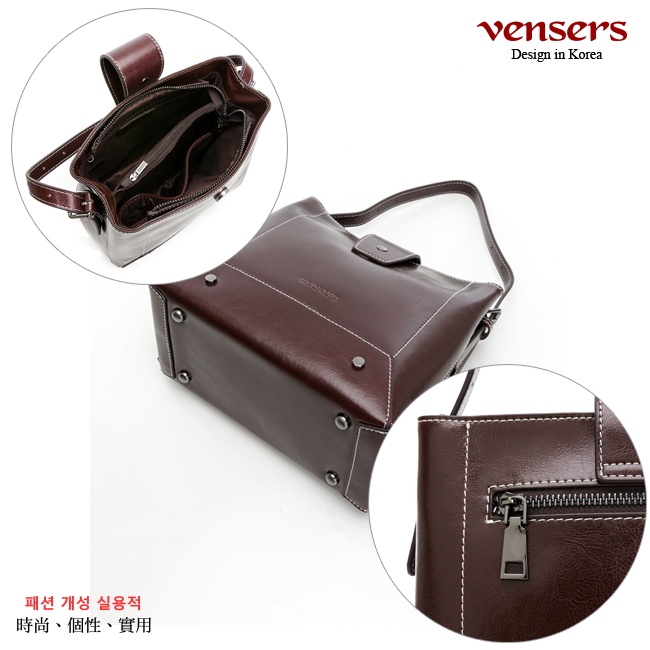 【vensers】小牛皮潮流個性包~斜肩背包(NL1083903咖啡)