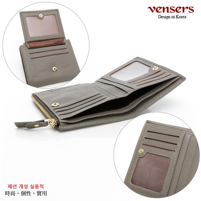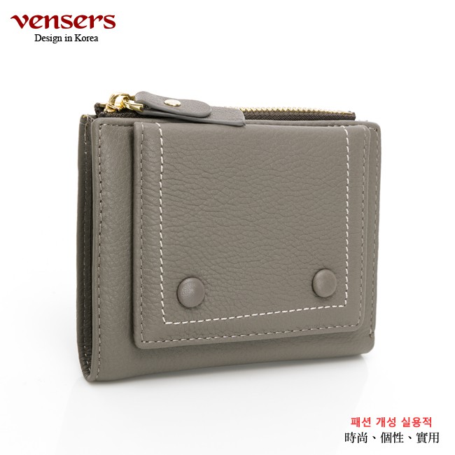 【vensers】小牛皮潮流個性皮夾~(TC602003杏色短夾)