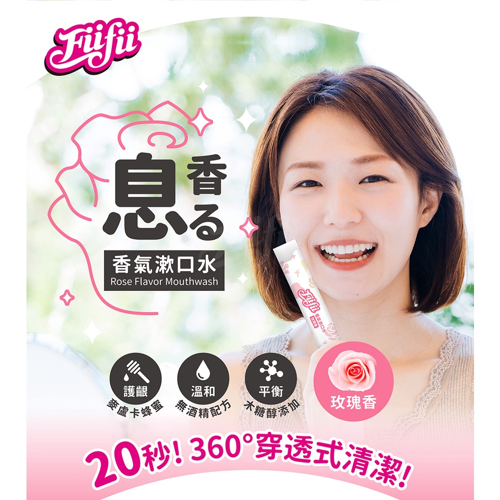 【Fiifii】 香氣漱口水-玫瑰香 20入加量175%組-加贈15包漱口水(共55包)-口腔香氛口腔清潔