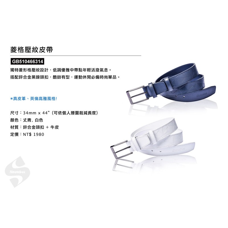 Snowbee Golf 菱格壓紋皮帶 2色 (騎馬 高球 網球高爾夫球褲皮帶 真皮革、英倫高雅風皮帶)