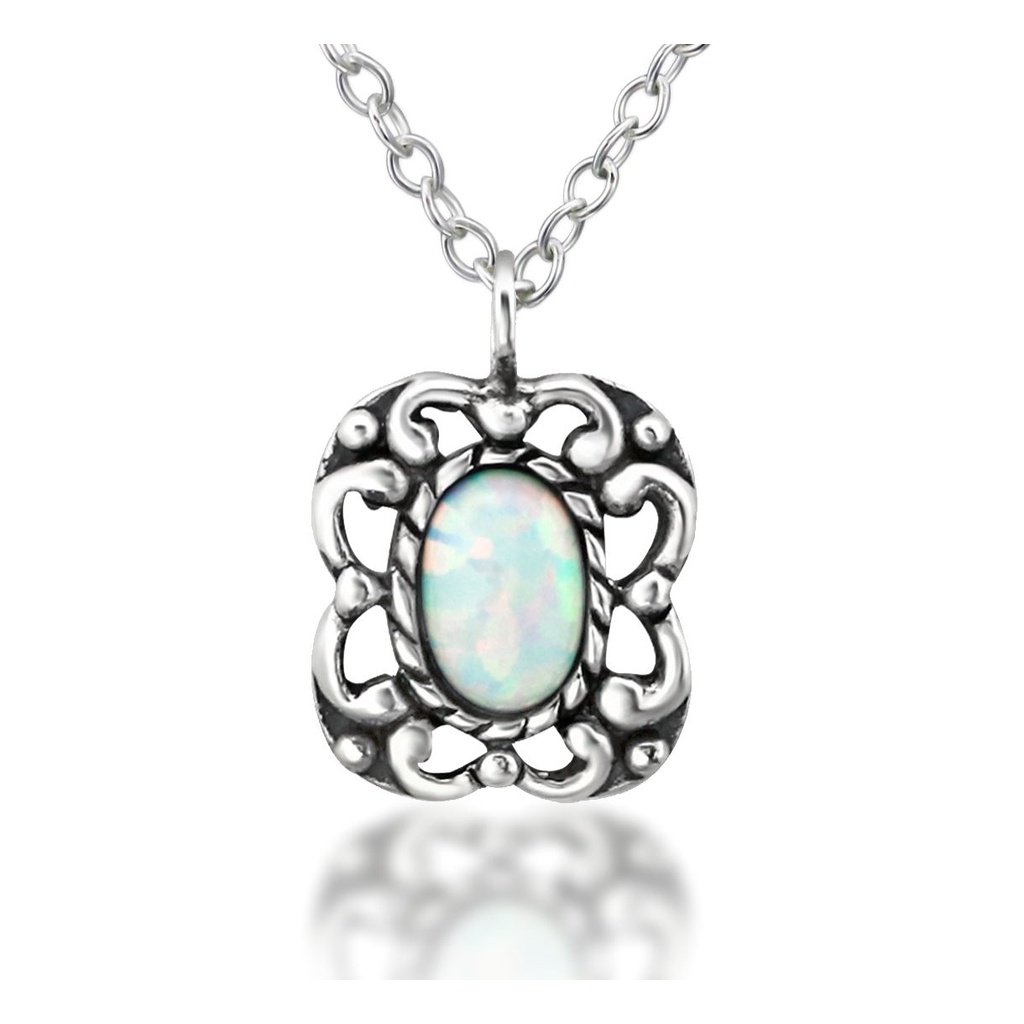 amoon輕珠寶【銀白蛋白石歐風項鍊】925純銀蛋白石項鍊 **晶銀彩寶系列**
