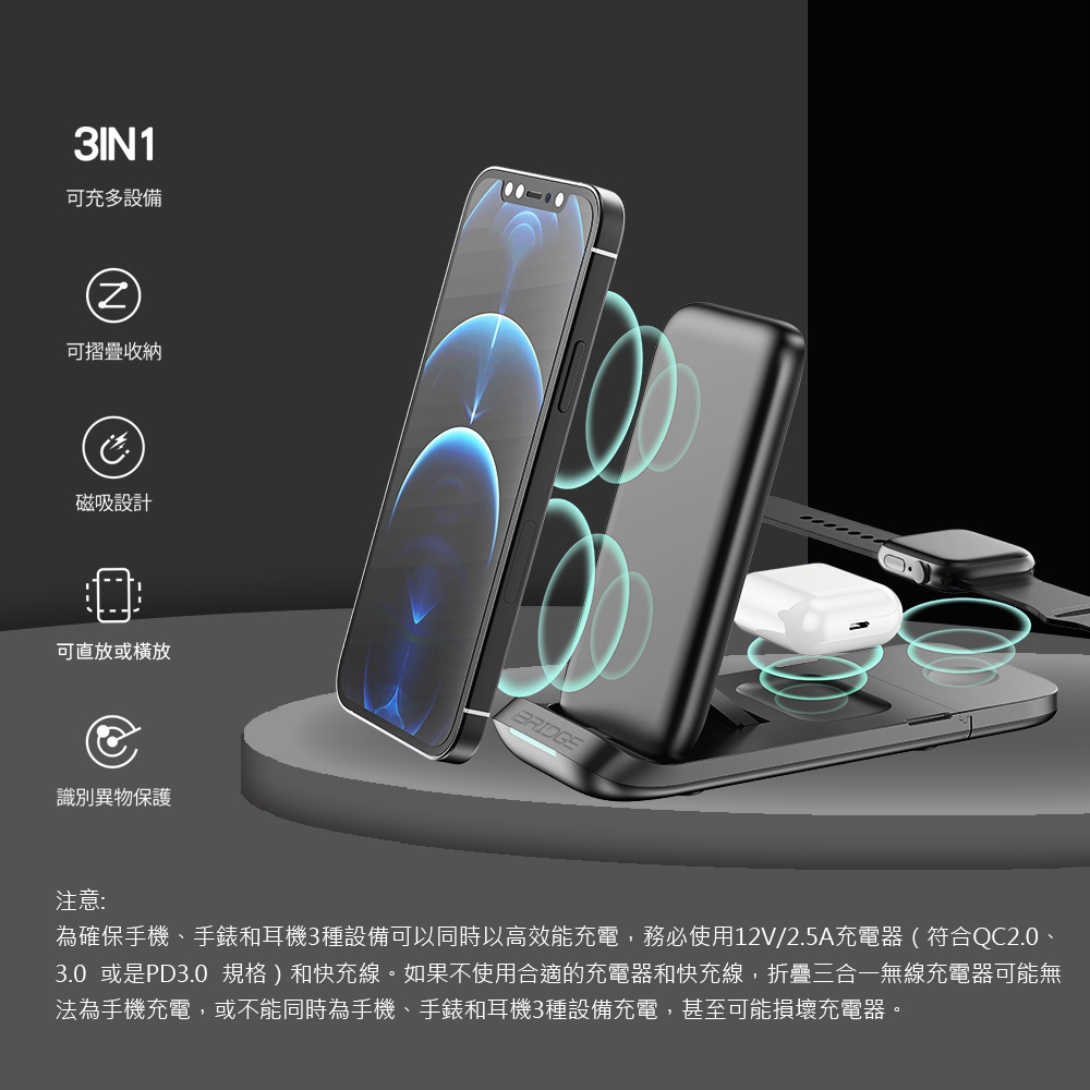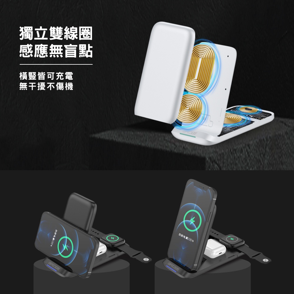 【iBRIDGE】折疊三合一無線充電器旗艦版-黑 / 白 IBW011