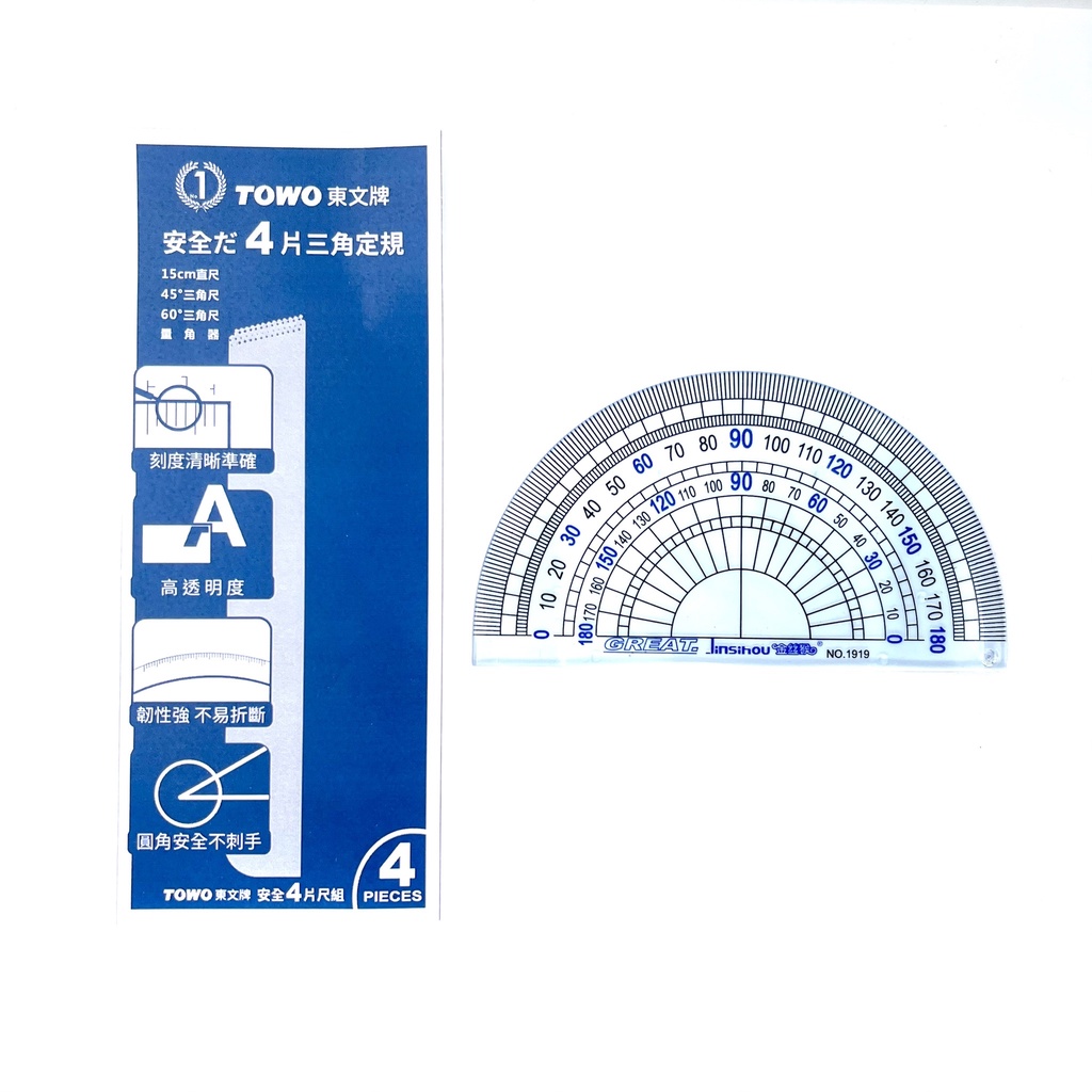 《TOWO 東文》TOWO東文牌 四片尺組 直尺/三角尺/量角器 (4片尺.學生.文具.禮物)