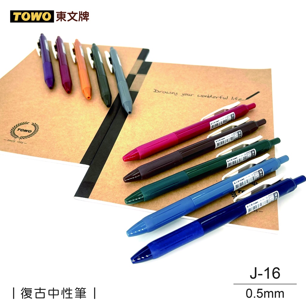 《TOWO 東文牌》J-16復古色中性筆 復古色 復古中性筆/文具/文創/學生/辦公/原子筆
