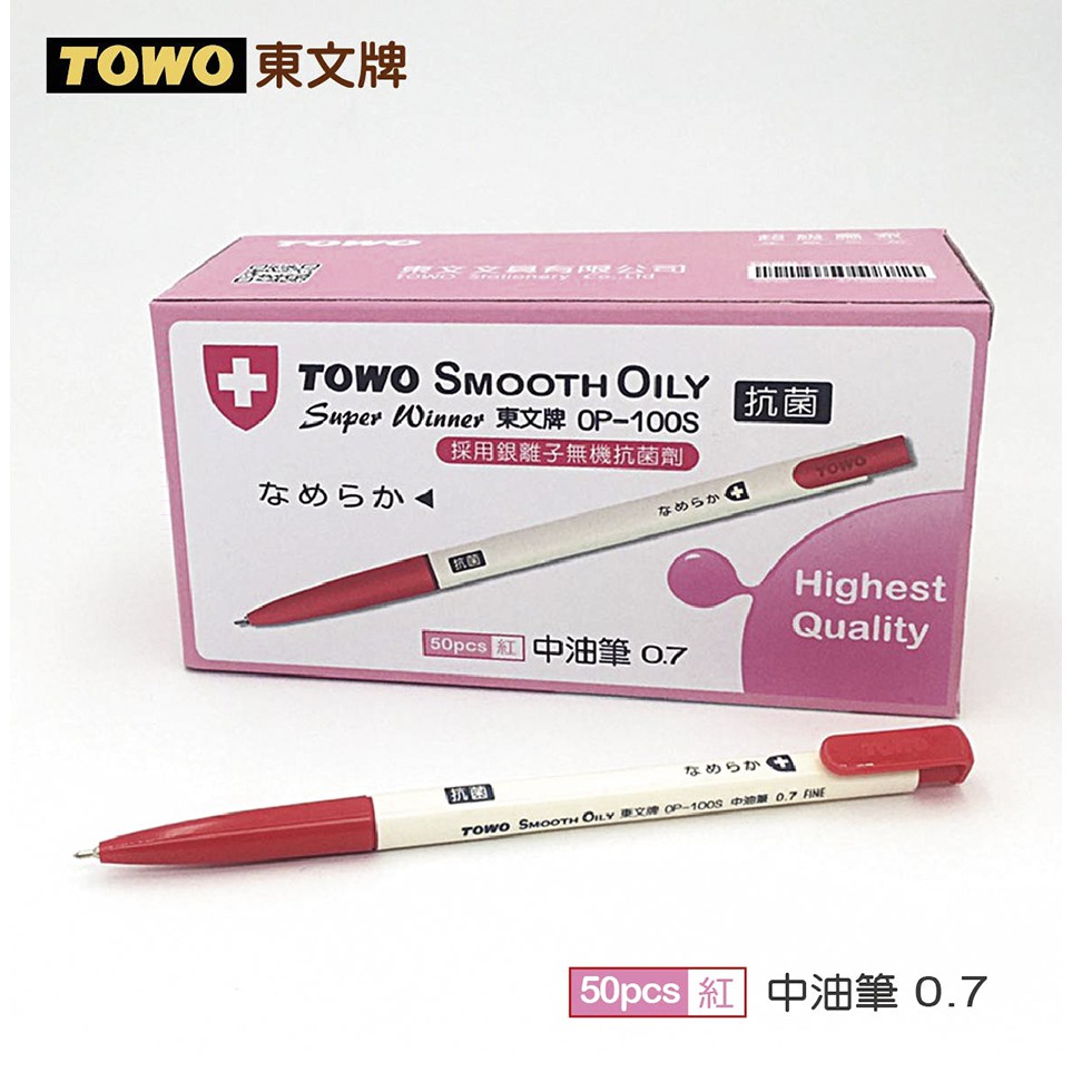 TOWO 東文牌 OP-100S 抗菌中油筆50入0.7mm/紅