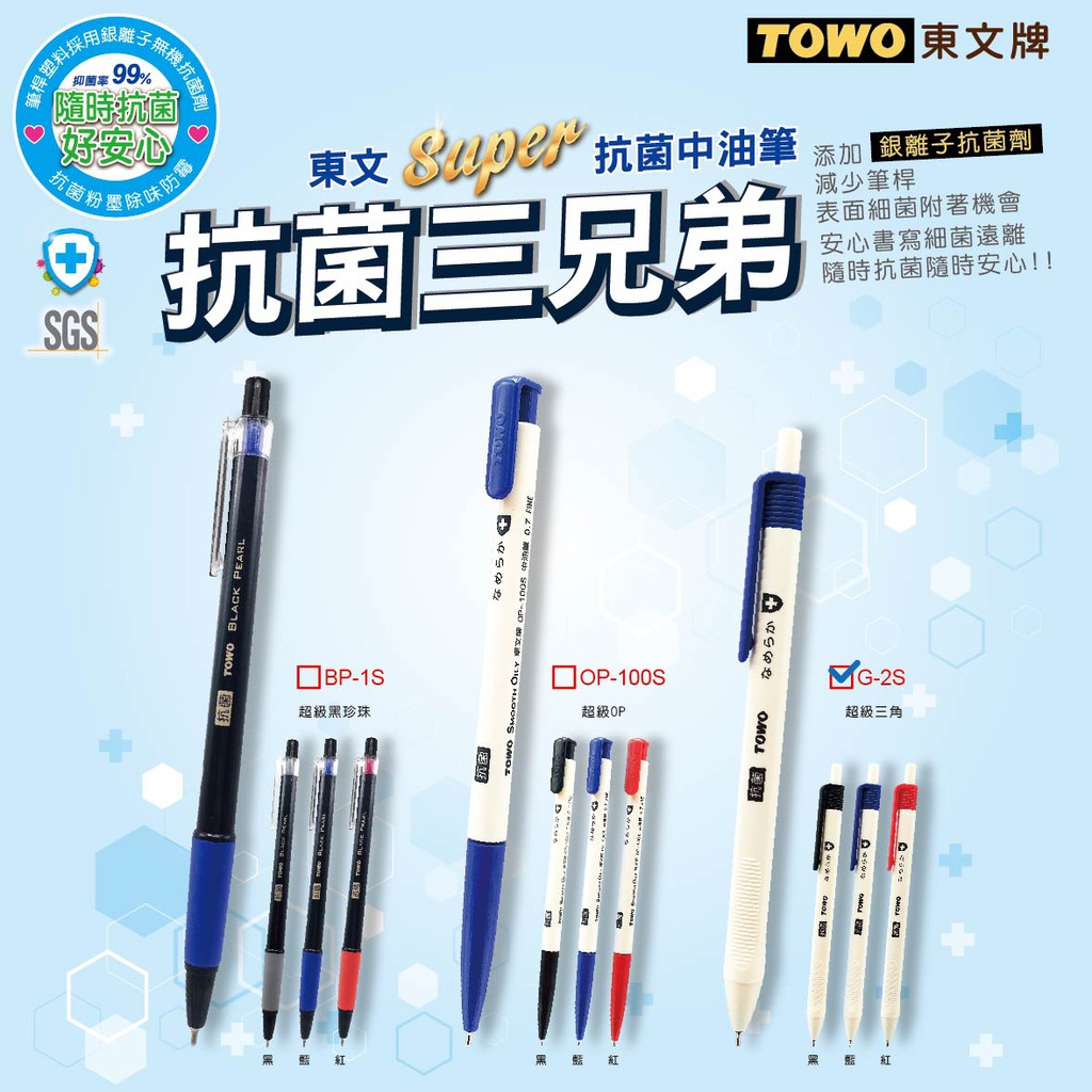 TOWO 東文牌 G-2S 抗菌中油筆 24入 紅/每盒贈送乙顆滑滑夾