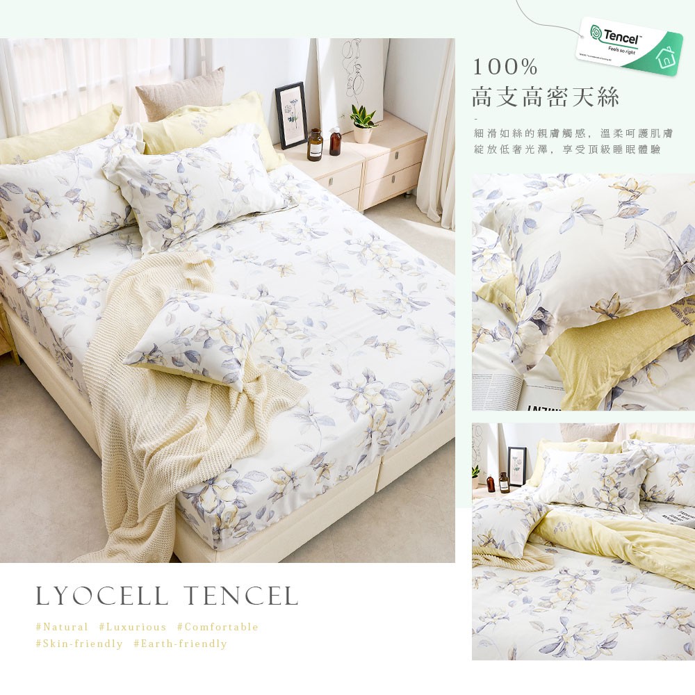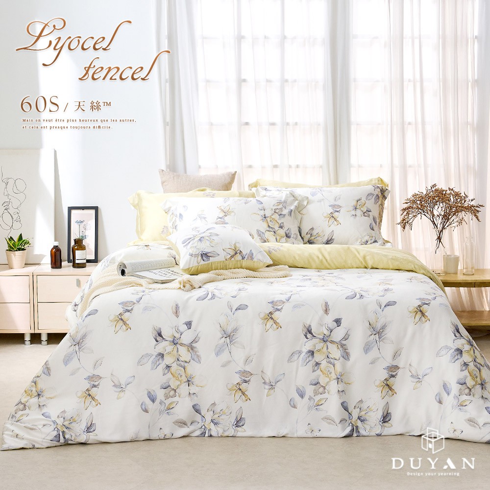 DUYAN竹漾 60支萊賽爾天絲-雙人/加大床包被套組-淡墨花繪 台灣製