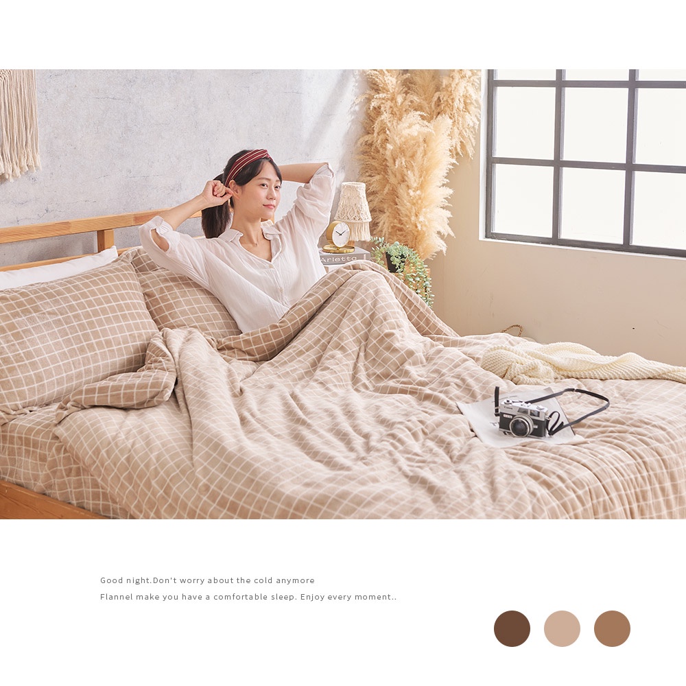 【DUYAN 竹漾】法蘭絨 單人/雙人/加大 床包兩用毯被組 / 濃縮卡布
