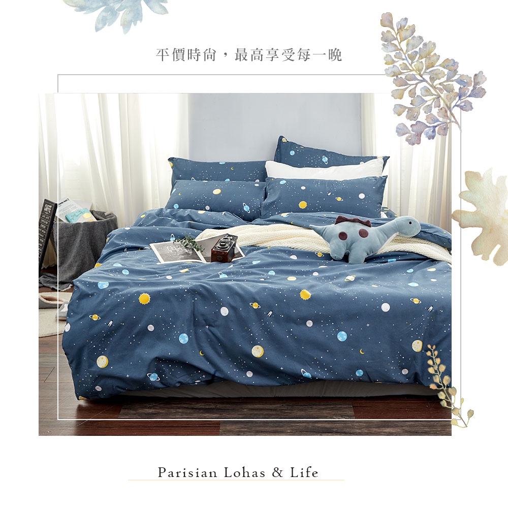 DUYAN竹漾 【文青簡約設計】天絲絨 床包被套/鋪棉兩用被組-小小星球