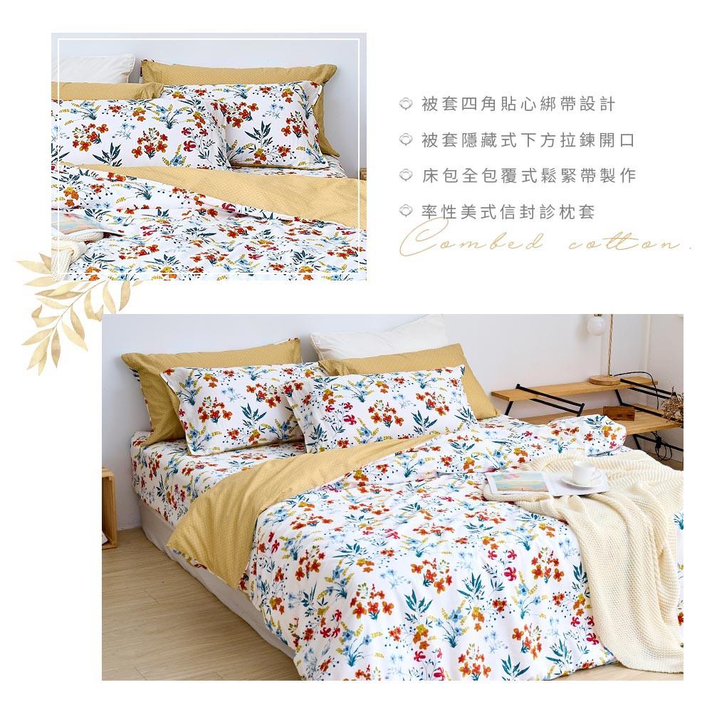DUYAN竹漾 【文青日常系列】100%精梳棉/200織床包被套組-微恬夏花 台灣製