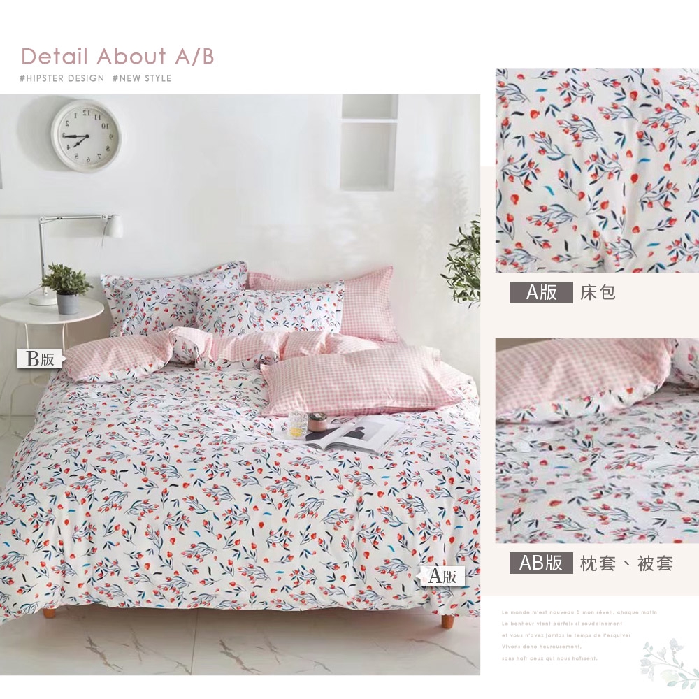 DUYAN竹漾 【文青簡約設計】舒柔棉 床包組/床包被套組/床包兩用被組-沁心花漾